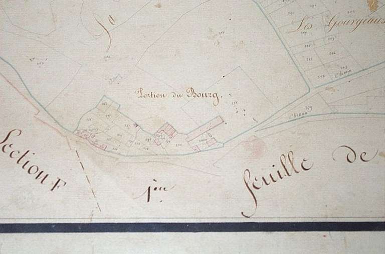 In 1807 Napoleon initiated the first detailed cartographic survey of the whole of France. The Charente department was one of the earlier regions to be surveyed once the project got going and Pleuville was done in 1825 (see note 1). One of the maps of Pleuville village shows a long rectangular building where Château de Pleuville now stands, and it appears this building was adapted and raised in height to form the present structure, some time after 1825. Today we can see clear differences in stonework which appear to confirm that most of the south-east courtyard front, and parts of the end walls facing north-east and south-west, were retained from the older building. The north-west front which faces the park was newly constructed, as were the present three large “granges” (multi-purpose barns), the main gateway, and the moat, which are not present on the 1825 map. The age of the earlier long building is not known (2).