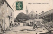 An early outcome of the French Revolution was the creation of new administrative areas called Départements in 1790. For most of the time since then Pleuville has been right on the border of the Département of the Charente. Pleuville commune is surrounded on three sides by communes in Vienne; its northern boundary coincides with that of the departement. Although for administration Pleuville is in the Confolens nord area of the Charente based on the town of Confolens, the nearest town to Pleuville is actually Charroux which is in Vienne.